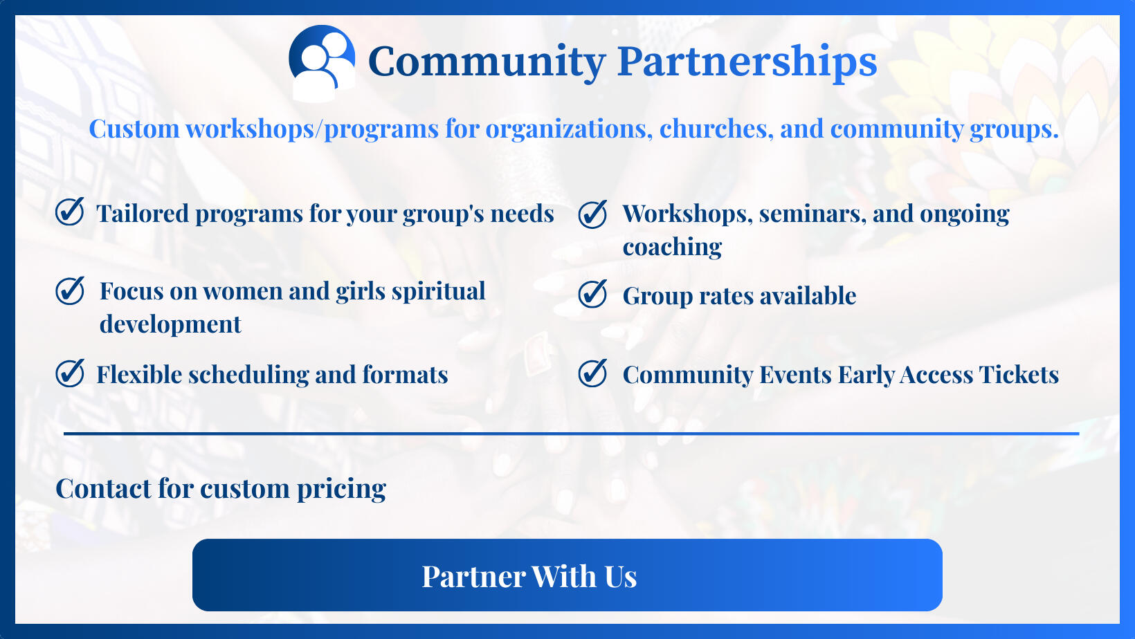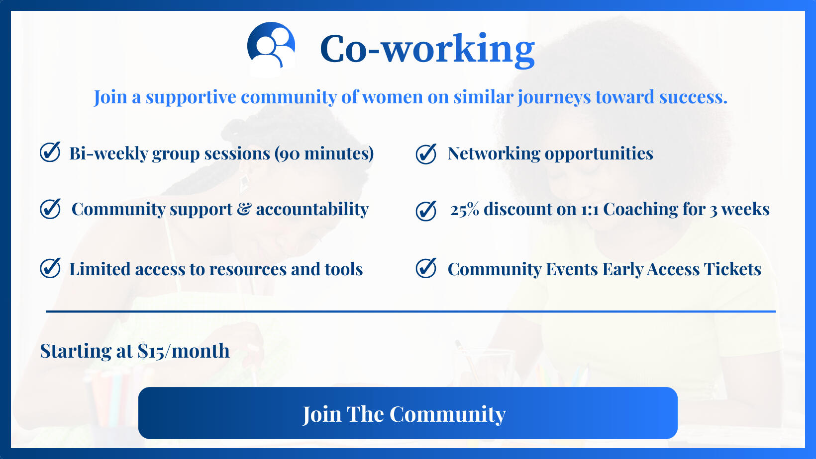 You're not alone in this journey. Join a community of women who are growing, learning, and succeeding together.