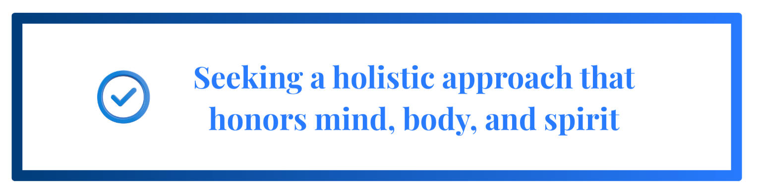Addressing physical, mental, emotional, social, spiritual, financial, environmental, and purposeful needs for true transformation.
